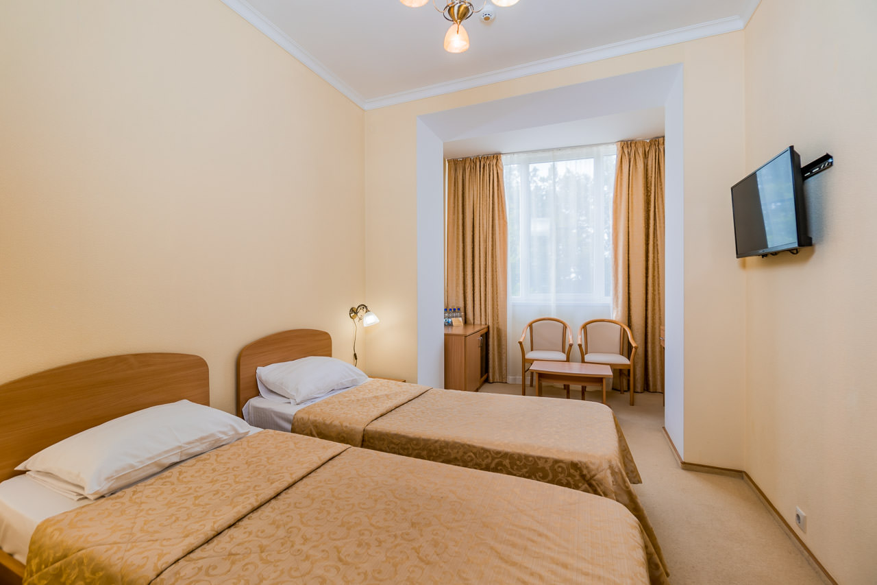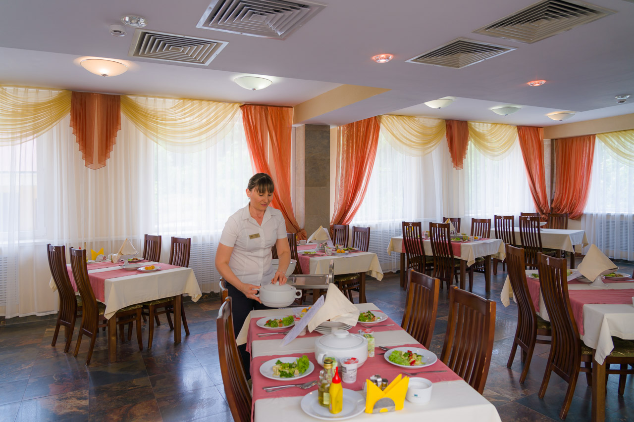 Небольшой современный санаторий «Горный» был построен в 2009 году в Горячем ключе – курорте, который входит в пятерку самых экологически чистых городов планеты. Санаторий расположен на возвышенности, в долине реки, окруженной лесными массивами, в небольшом удалении от центра города, в тихом уединенном месте. От аэропорта Краснодара до санатория дорога занимает не более часа, а от железнодорожного вокзала станции «Горячий Ключ» - 10 минут на такси. Санаторий очень компактный, все его подразделения объединены в единый комплекс. В главном корпусе расположились лечебно-диагностическое отделение, номерной фонд, администрация санатория, бассейн, сауна, турецкая баня. Со смотровой площадки, расположенной над зданием ресторана санатория, открывается панорамный вид на город. Номерной фонд состоит из 75 номеров, среди которых много уютных 1-местных номеров, а также есть удобные номера класса стандарт, комфорт, джуниор и люкс. В номерах: новая мебель, ортопедические матрасы, современная сантехника и системы кондиционирования. В холлах - бесплатный wi-fi Санаторий предлагает трехразовое питание с приемом минеральной воды строго по медицинским показаниям. Лечебное питание разработано в виде 14-дневного меню с учетом суточных норм потребностей пищевых веществ и энергии. Ежедневное меню составляется в зависимости от характера заболеваний по нескольким вариантам: основная или стандартная диета, щадящая, белковая, низкокалорийная. Все блюда готовятся из свежих кубанских продуктов В «Горном» есть 17-метровый округлый плавательный бассейн с противотоками, джакузи, гейзером и водопадом, финской сауной или хамамом. Санаторий предоставляет современную диагностику на аппарате MULTISKAN, санаторно-курортные программы лечебно-профилактического и оздоровительного характера, новейшую методику лечения спины и суставов, грязевые и водные процедуры. На территории имеется собственная питьевая галерея с природной минеральной водой. Организовано лечение природной термальной сероводородной водой Псекупского месторождения в городской водолечебнице. В грязелечении используется Ейская сульфидно-иловая грязь в виде аппликаций.